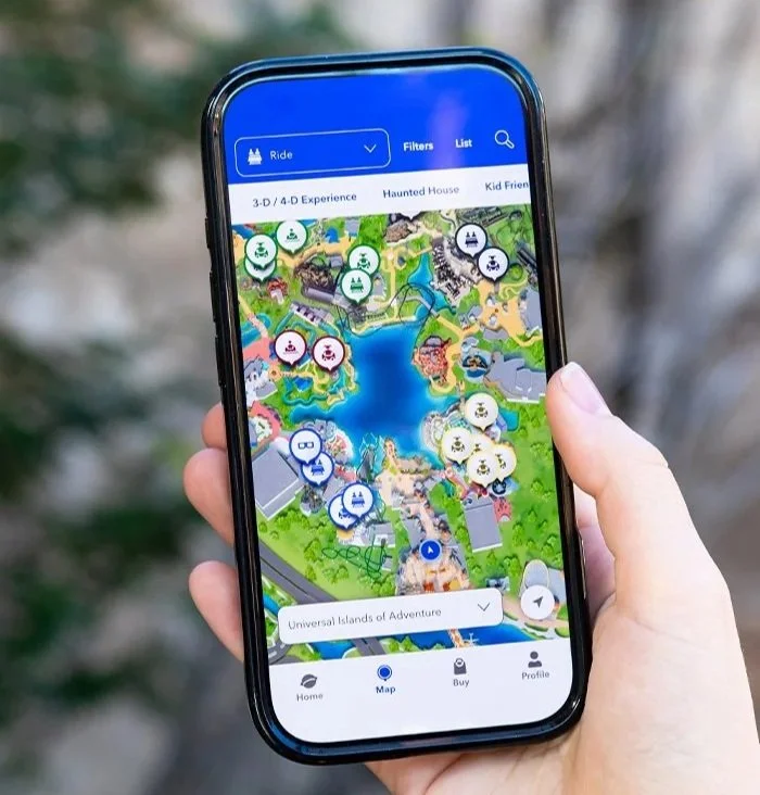 The interactive maps are one of the app’s most useful tools—especially in large parks like Islands of Adventure and Epic Universe.