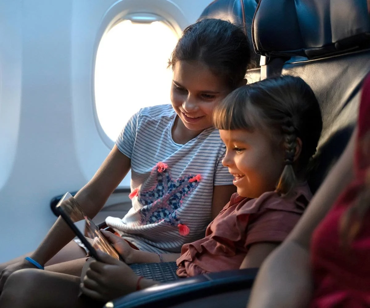 Dress your kids in layers for changing temps, and always bring something cozy. Small comforts like a travel pillow, headphones sized for kids, or their favorite hoodie can make a huge difference on the journey.